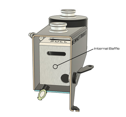 - Internal baffle prevents slosh while also removing air from the coolant system